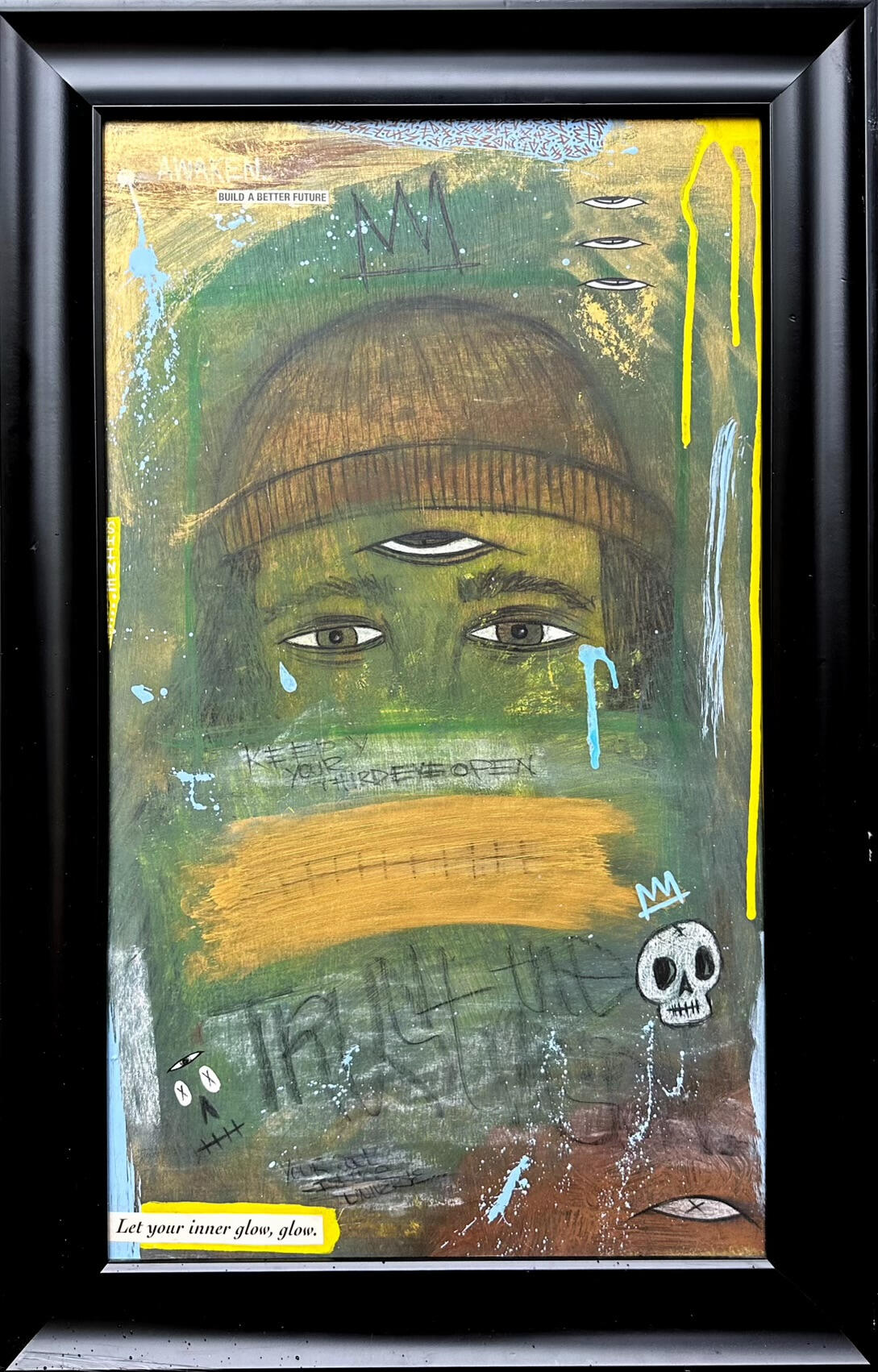 Indispensable Energy (2024)This is 1/30 mixed media paintings that were created for my first solo gallery show "Transmissions from the Ancient Past".It is also the first of my physical pieces to incorporate the Transient Labs T.R.A.C.E. chip. Incorporated into & linked with the physical piece is a scannable NFC chip that acts as a digital certificate of authenticity. I can also update the provenance of the piece in the event of showcases, sales, hidden messages etc.the soul is indispensable. it is energy that can't go nowhere. it may jump from vessel to vessel but it eternal. it may become trapped temporarily where it can remain dormant. live as true to your inner self as possible & it won't get stuck. using that energy to work towards what you know is right. this leads to your life working out exactly how you want it to and how it is meant to. put in the "work" & reap the harvest.Mixed Media on wood in upcycled frame.materials used: