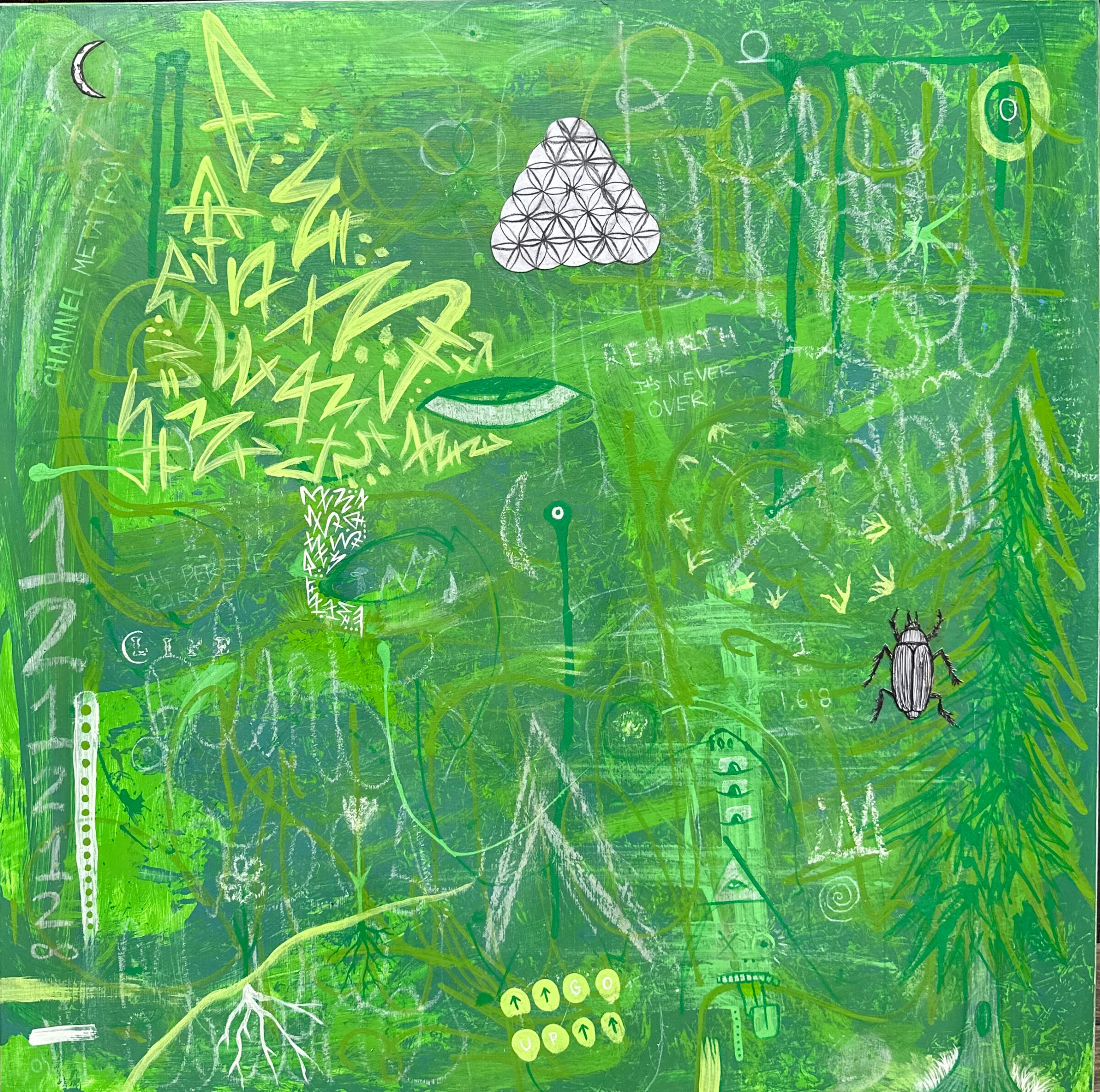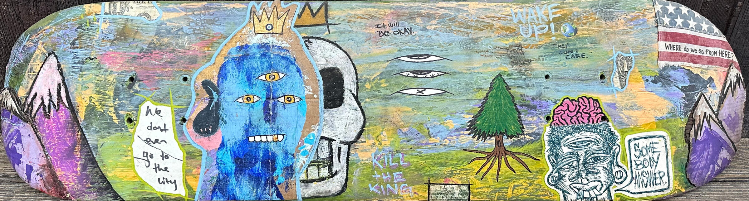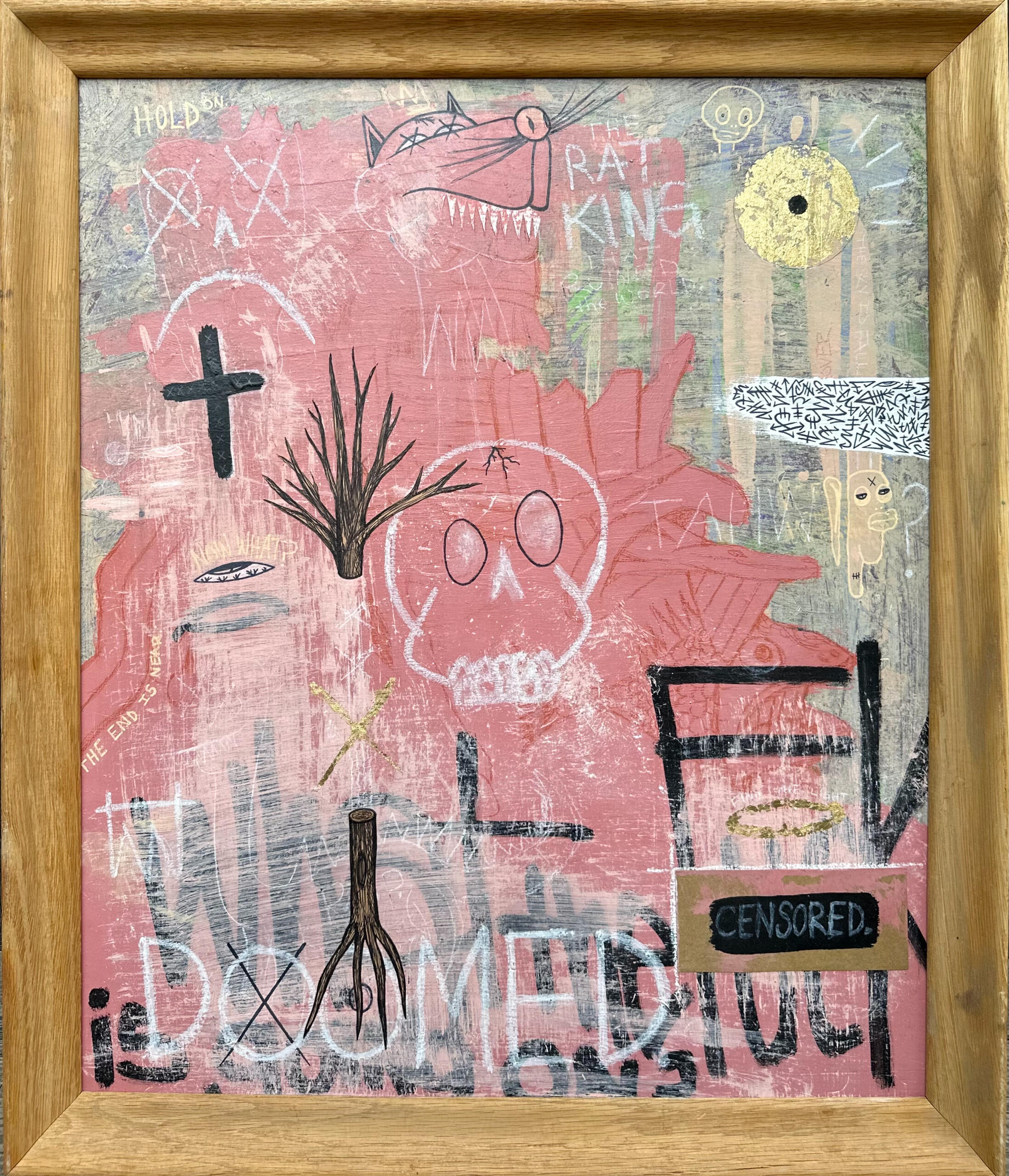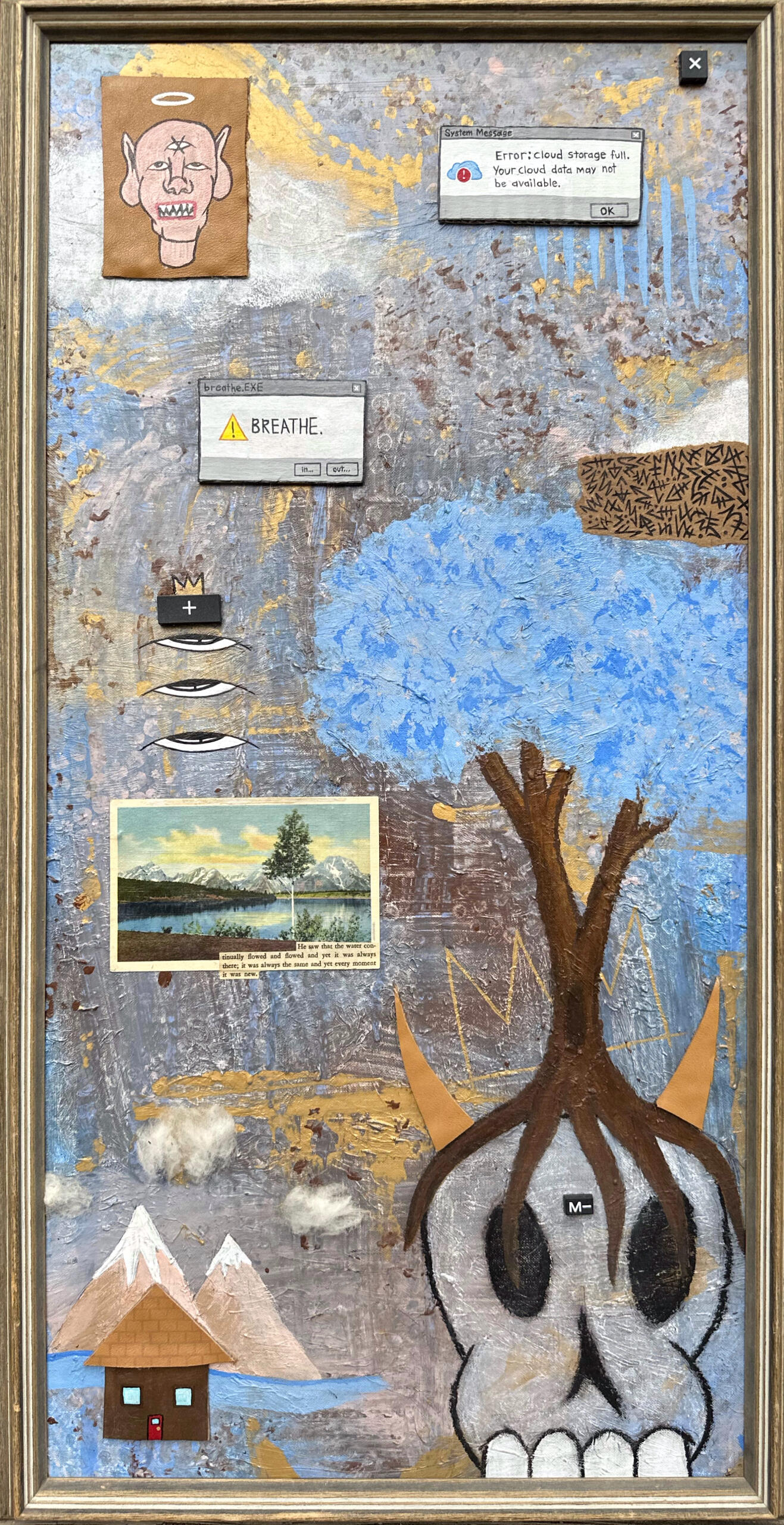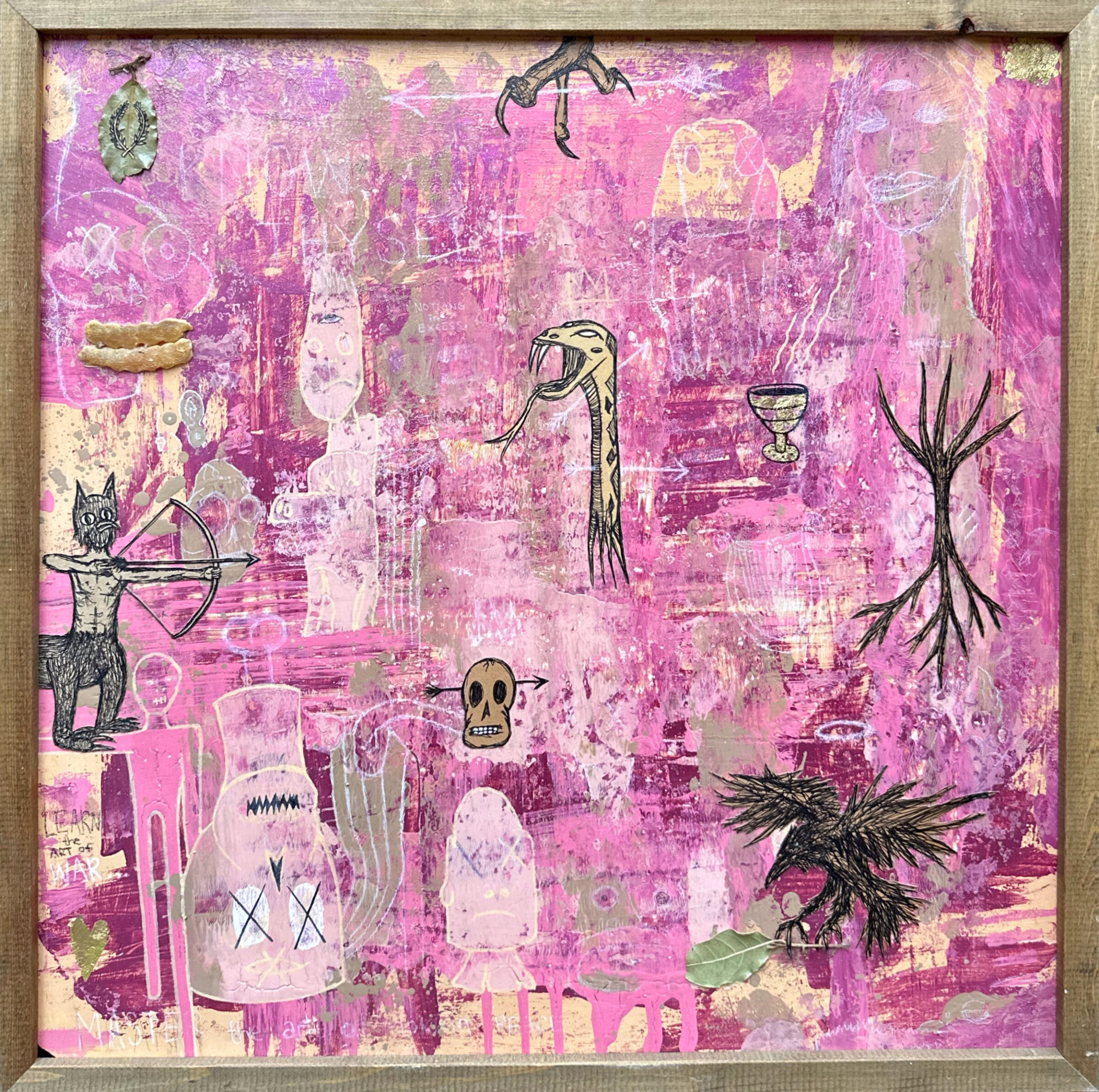 The 30 pieces in this collection were created mostly during 2023 and 2024 and with the exception of a few acrylic paintings are all mixed media assemblage style pieces.I used this show as an opportunity to not only explore new ideas (spending almost as much time researching as I did creating the artwork) but also to experiment with combining various styles & mediums that I have used throughout the years.Each one of these paintings has it's own general theme & idea with hidden symbolism & meanings. Some of it will not be apparent to everyone, and not all of it is even apparent to me necessarily. I really tried to clear my mind, meditate, & let these pieces flow through me without putting too much of myself into them.While these paintings were really meant to be viewed in person (& I highly encourage checking them out at Blo Back Gallery) I poured alot of time & energy into these pieces and wanted anyone who wanted to see them (whether they can be present in person or not).interactive digital galleryThanks so much for viewing these paintings with a clear mind and an open heart. I truly hope that some of this work speaks to you or gives you some sort of connection or feeling. Feel free to reach out & let me know if any of these pieces really speak to you or if you have any additional questions!