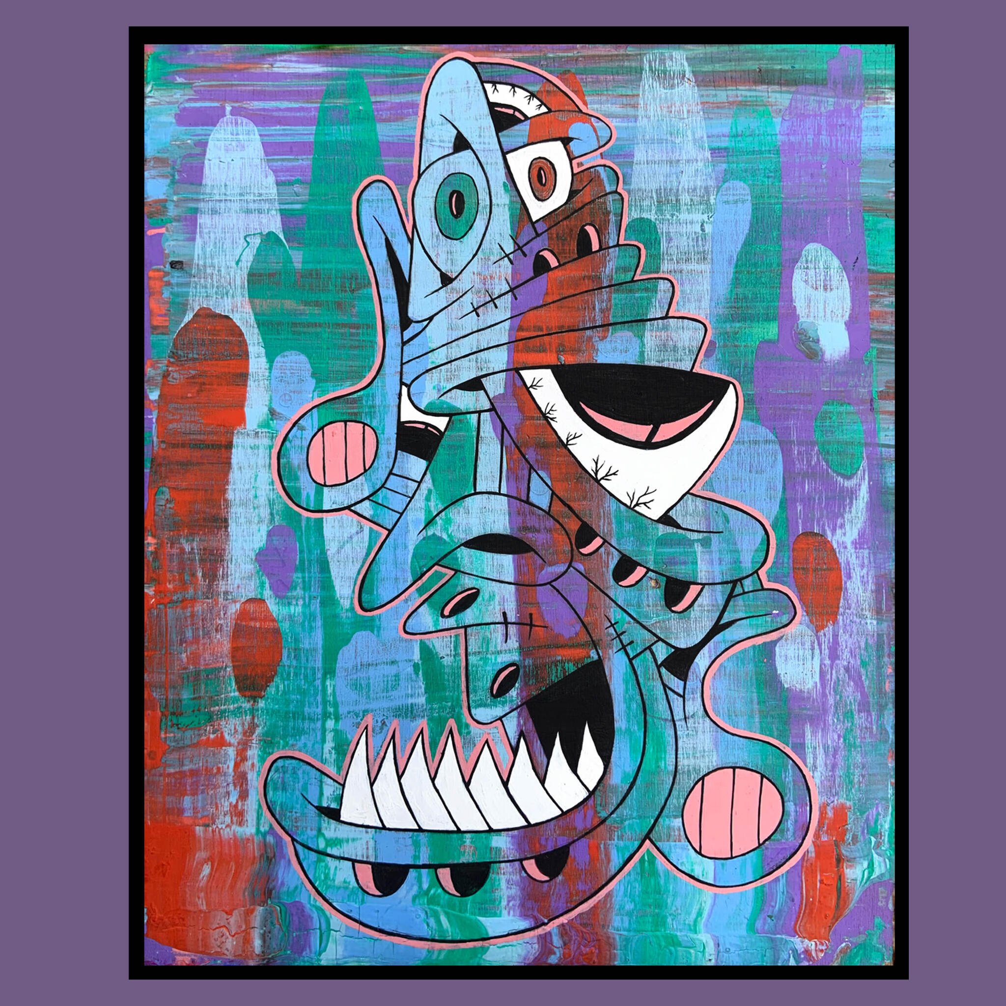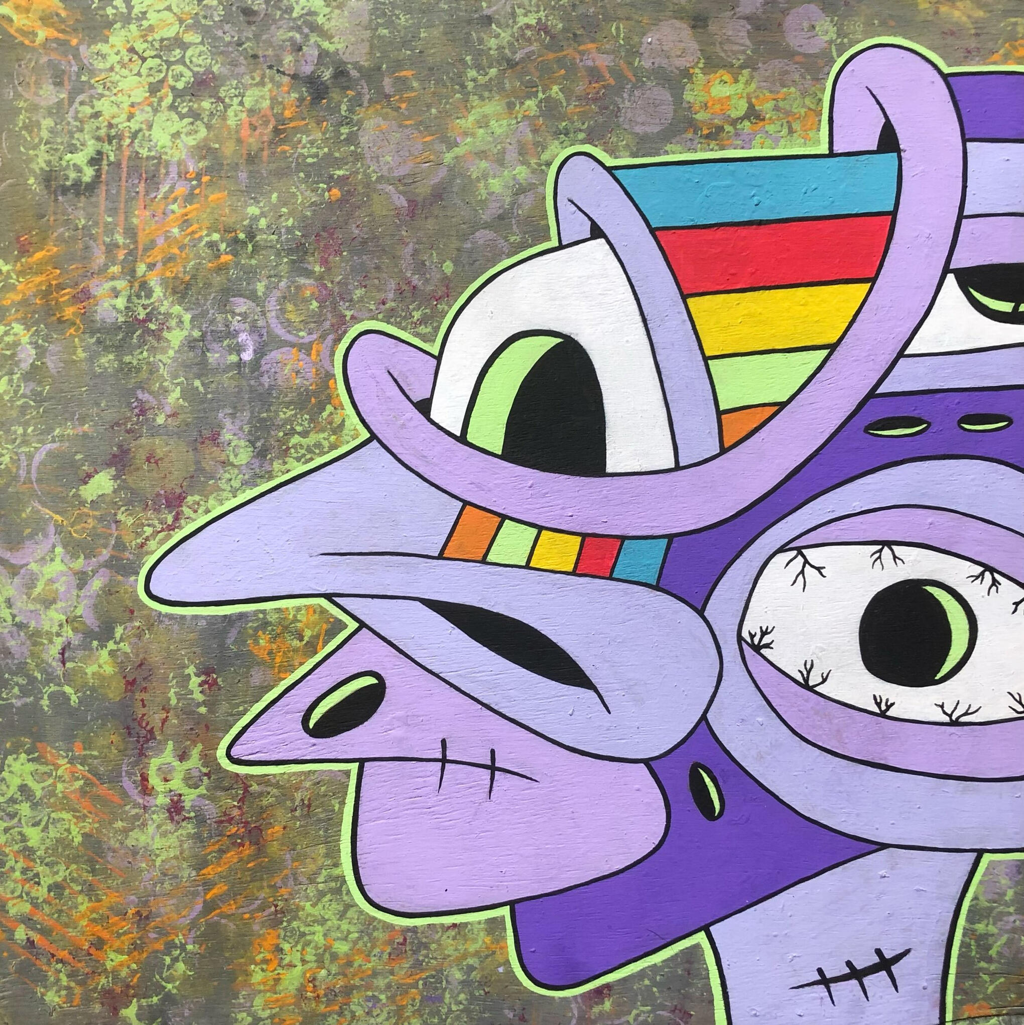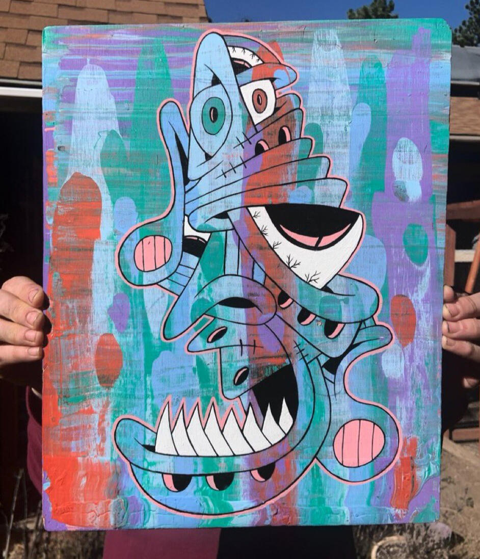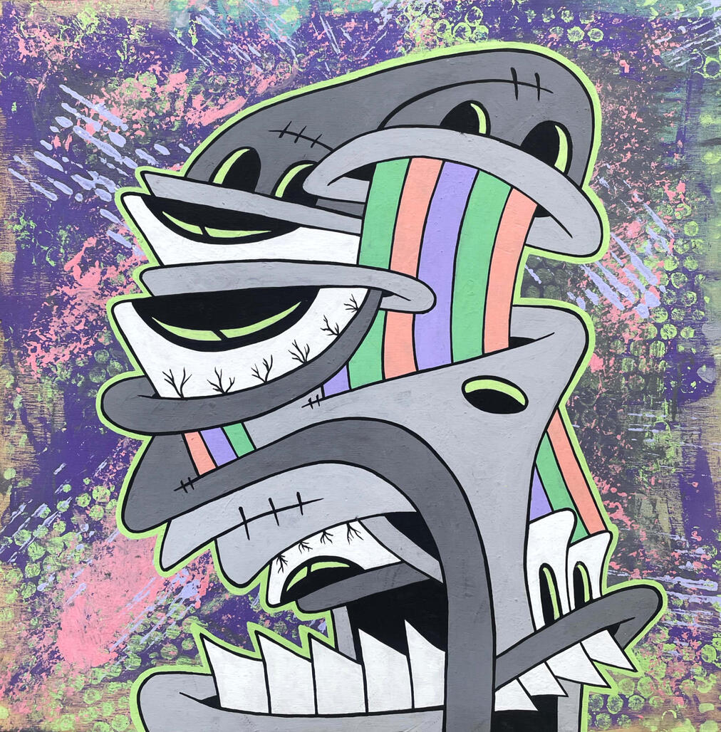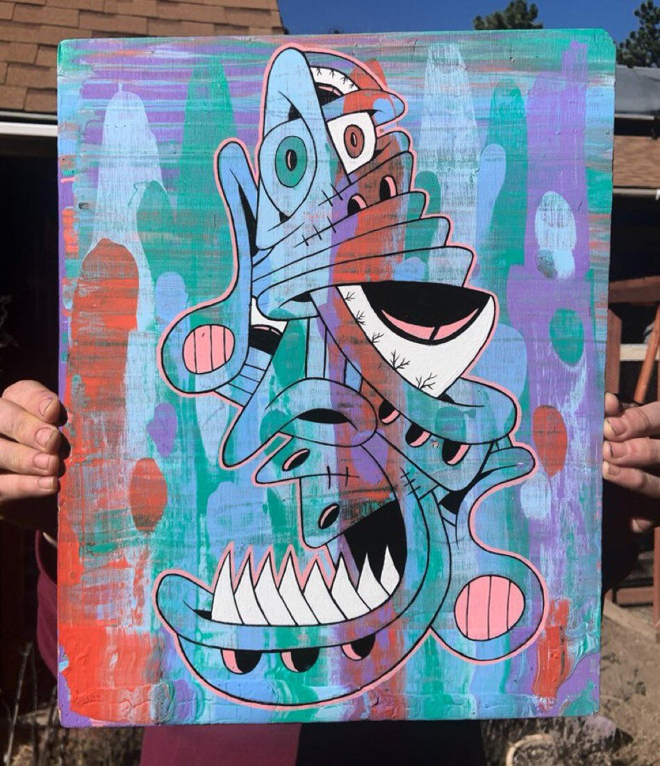 Manic Mondaze was the first acrylic painting that I minted on the blockchain. Painting has always been an outlet for me to express myself & my feelings/emotions.At the time I had been mainly focusing on digital illustrations & was missing the peace that comes with painting. This piece is the beginning of a shift towards primarily making acrylic paintings.acrylic on wood panel ~ 16.25” x 16.25”minted 5/9/22collector of token can claim physical painting. physical painting shows process video via AR