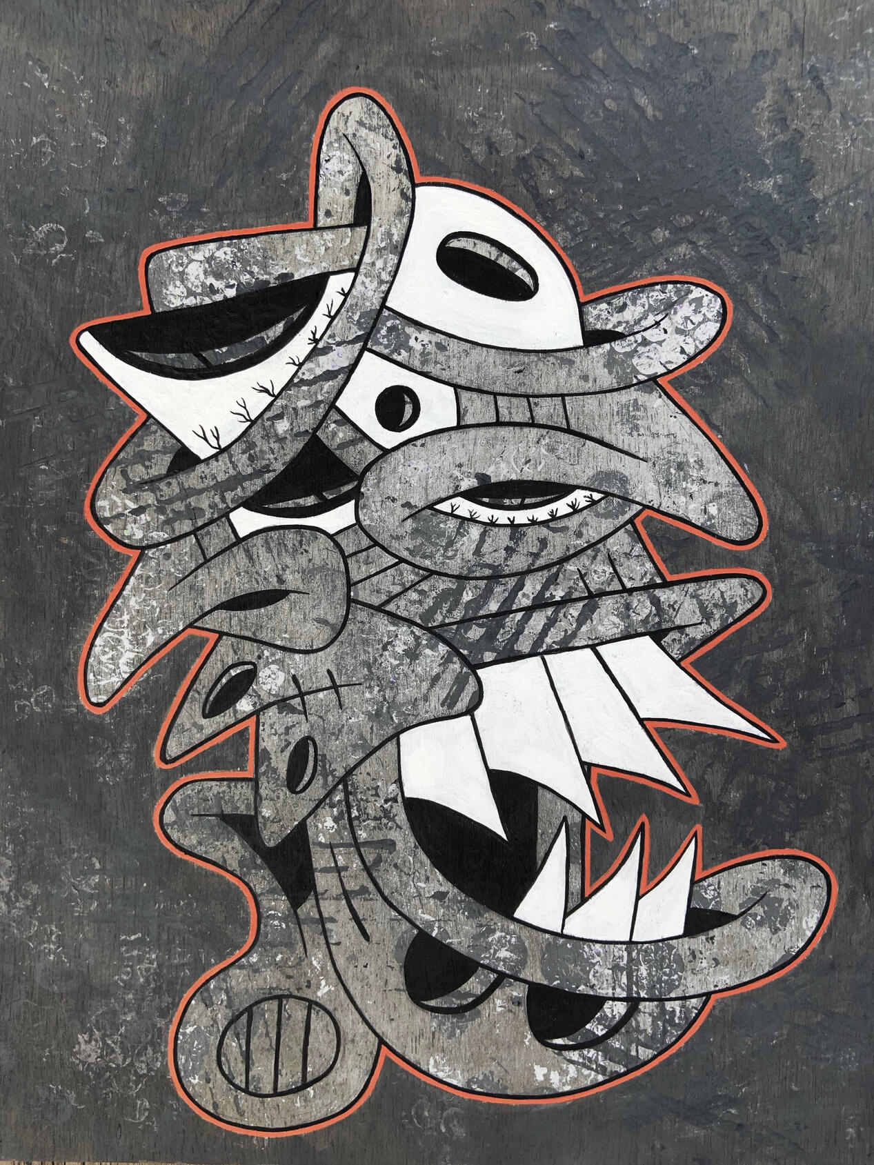 acrylic paint & spraypaint on wood