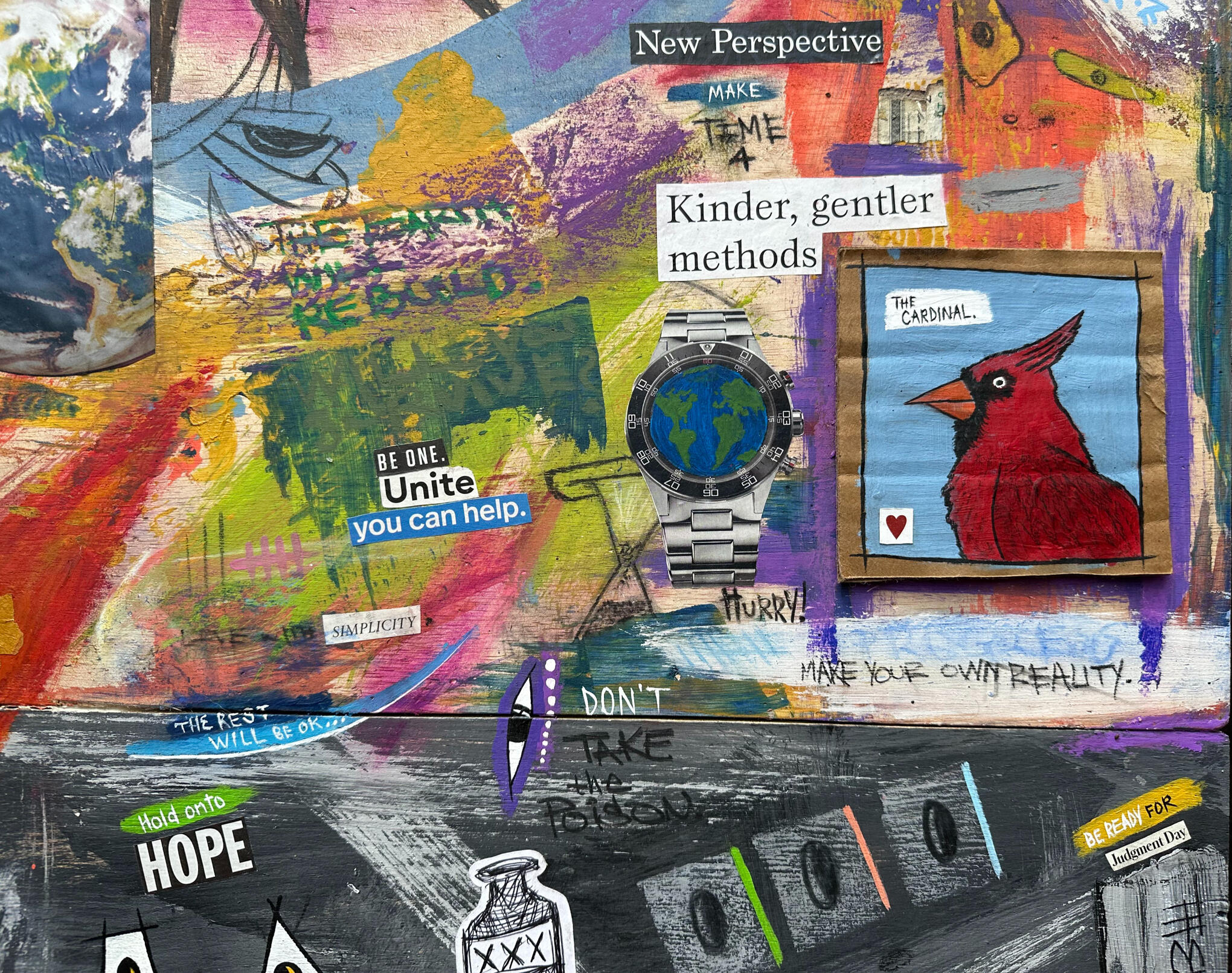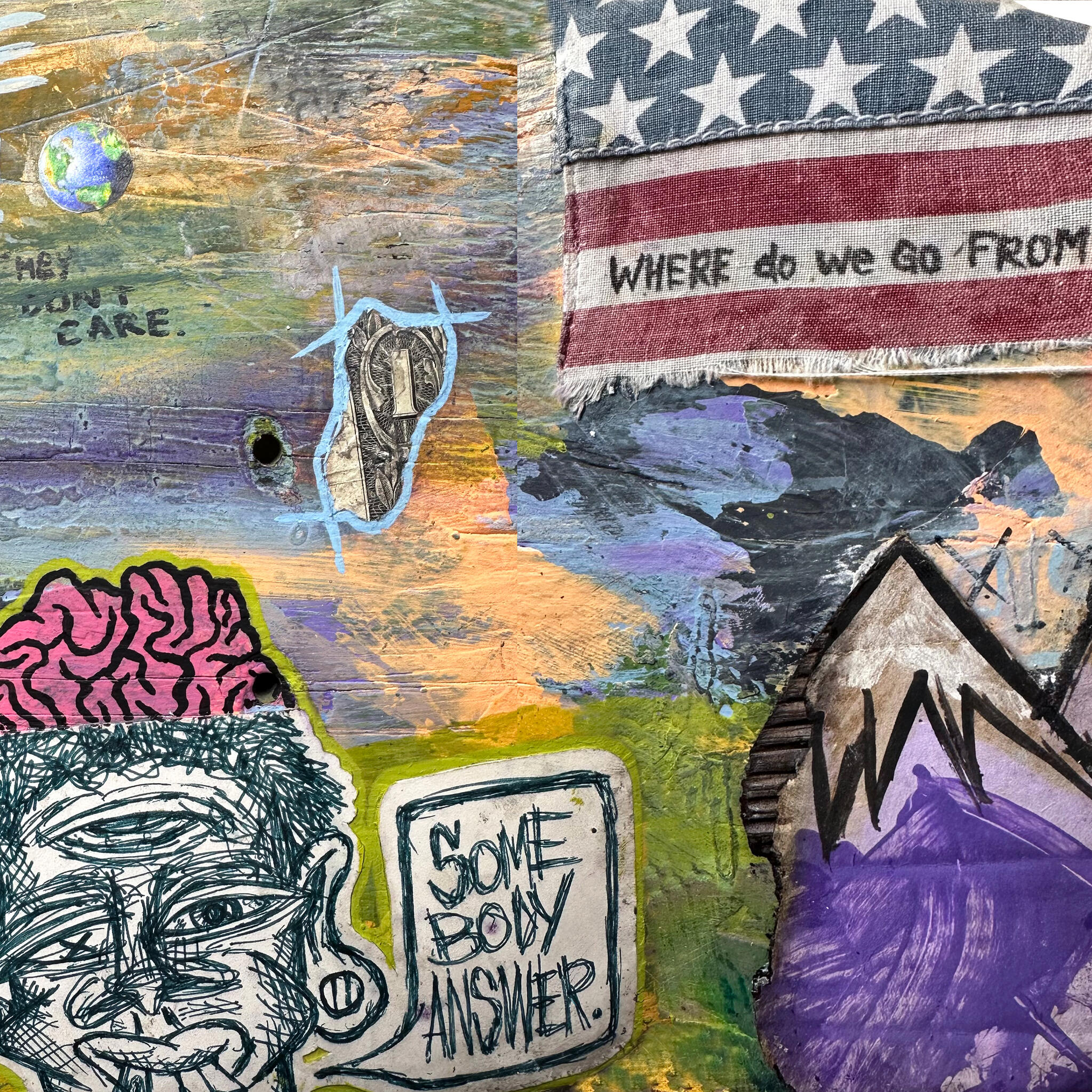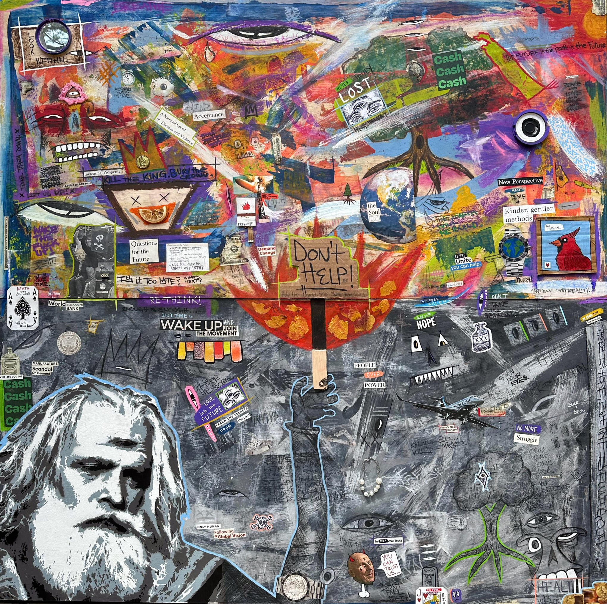 4' x 4' mixed media assemblage:•acrylic