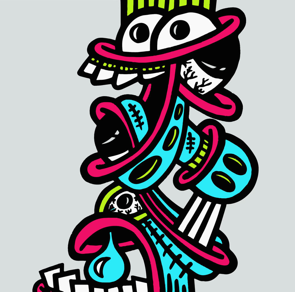 This piece is an important piece for me as it is one of the first pieces that I started getting "recognition" for.It started as a black and white marker drawing that I digitized & colored on the computer.It was featured on a beer can for Collective Arts Brewing's dry hop sour.