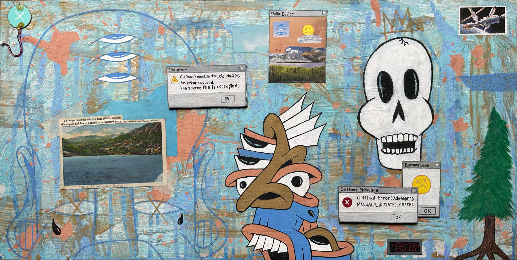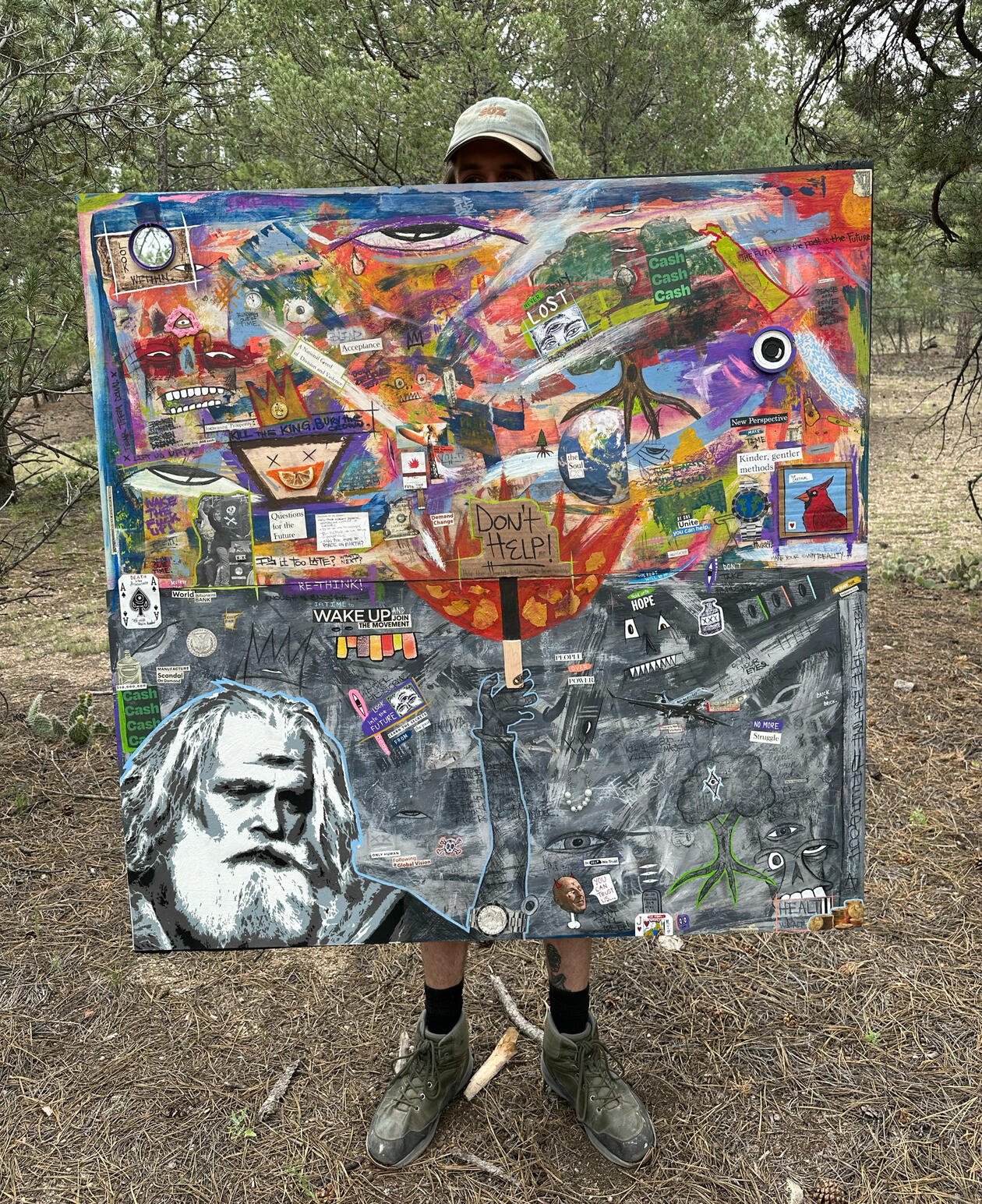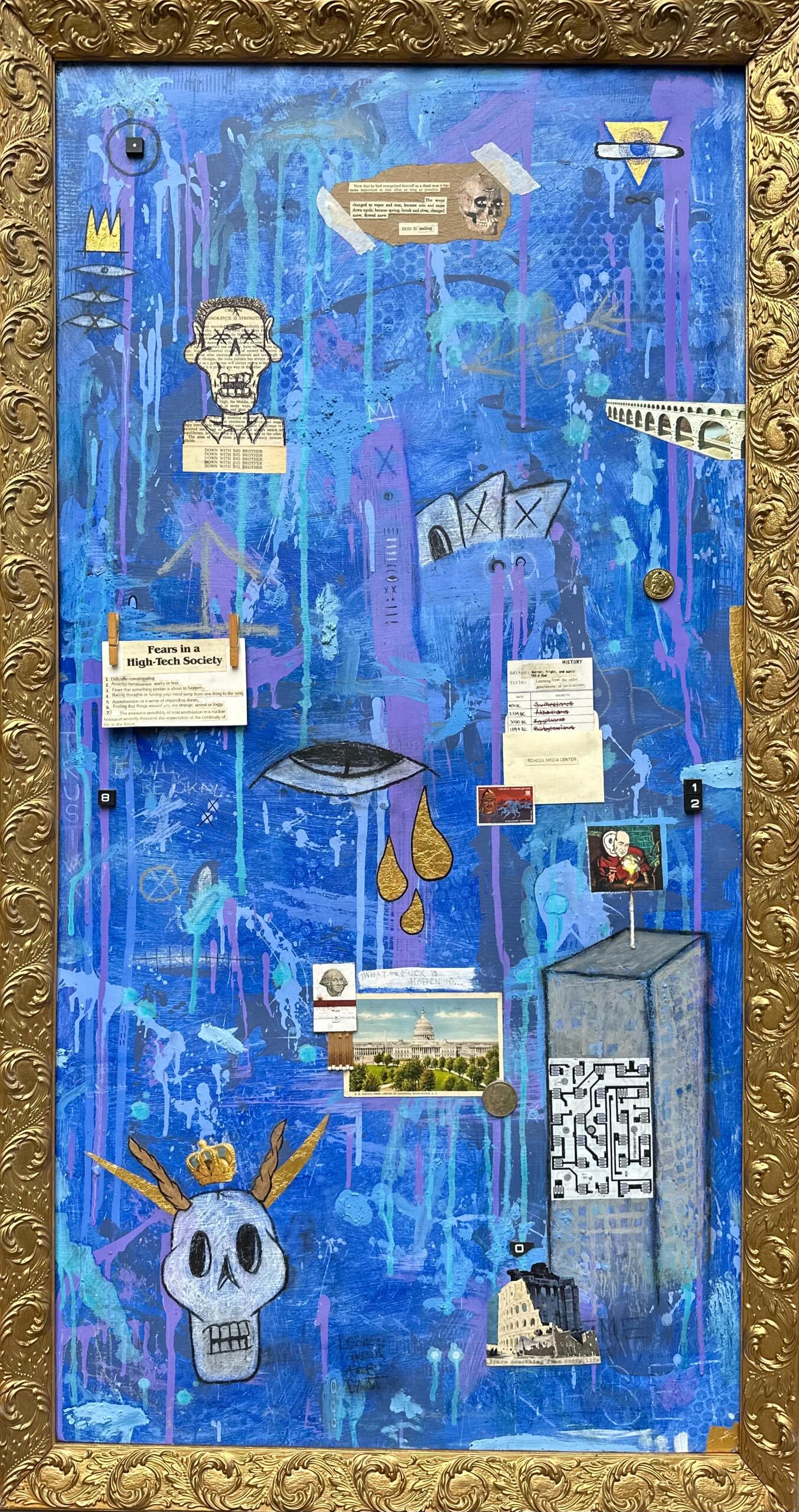 The 30 pieces in this collection were created mostly during 2023 and 2024 and with the exception of a few acrylic paintings are all mixed media assemblage style pieces.I used this show as an opportunity to not only explore new ideas (spending almost as much time researching as I did creating the artwork) but also to experiment with combining various styles & mediums that I have used throughout the years.Each one of these paintings has it's own general theme & idea with hidden symbolism & meanings. Some of it will not be apparent to everyone, and not all of it is even apparent to me necessarily. I really tried to clear my mind, meditate, & let these pieces flow through me without putting too much of myself into them.While these paintings were really meant to be viewed in person (& I highly encourage checking them out at Blo Back Gallery) I poured alot of time & energy into these pieces and wanted anyone who wanted to see them (whether they can be present in person or not).interactive digital galleryThanks so much for viewing these paintings with a clear mind and an open heart. I truly hope that some of this work speaks to you or gives you some sort of connection or feeling. Feel free to reach out & let me know if any of these pieces really speak to you or if you have any additional questions!