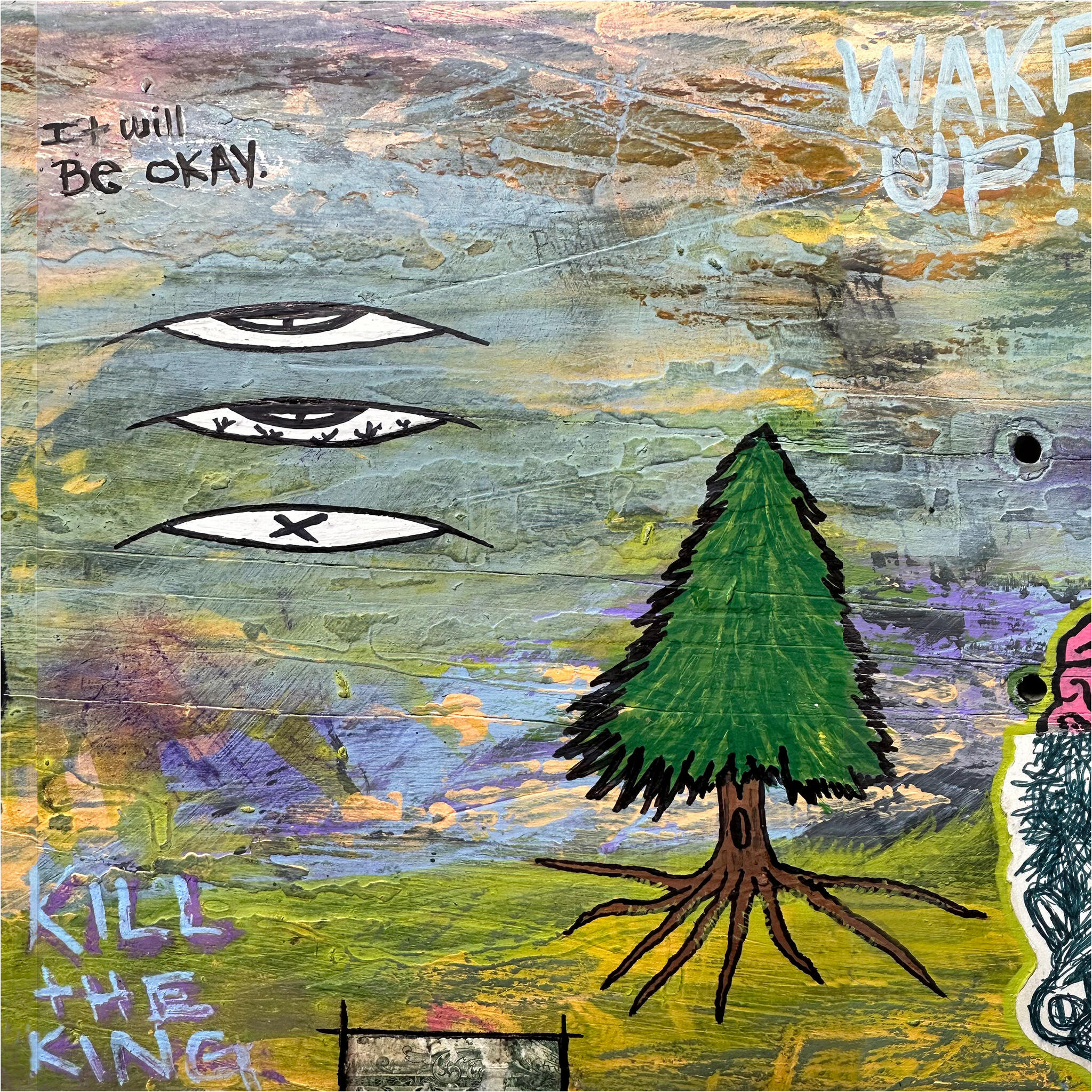 it will be okay.mixed media assemblage on skate deck using: