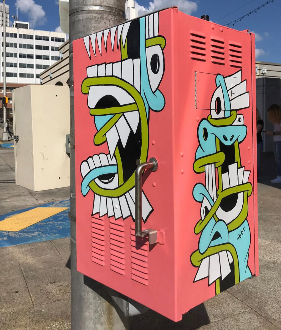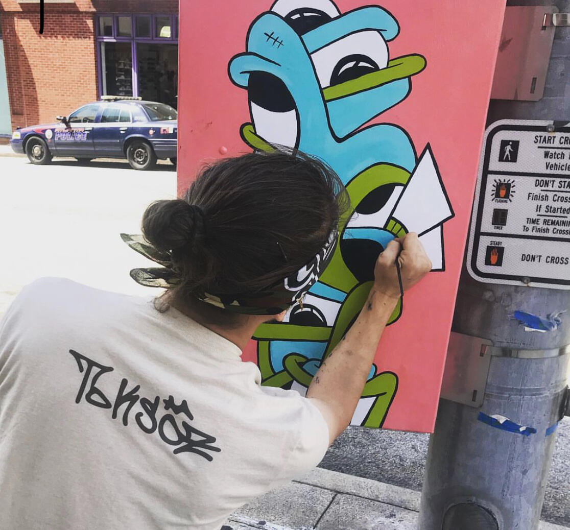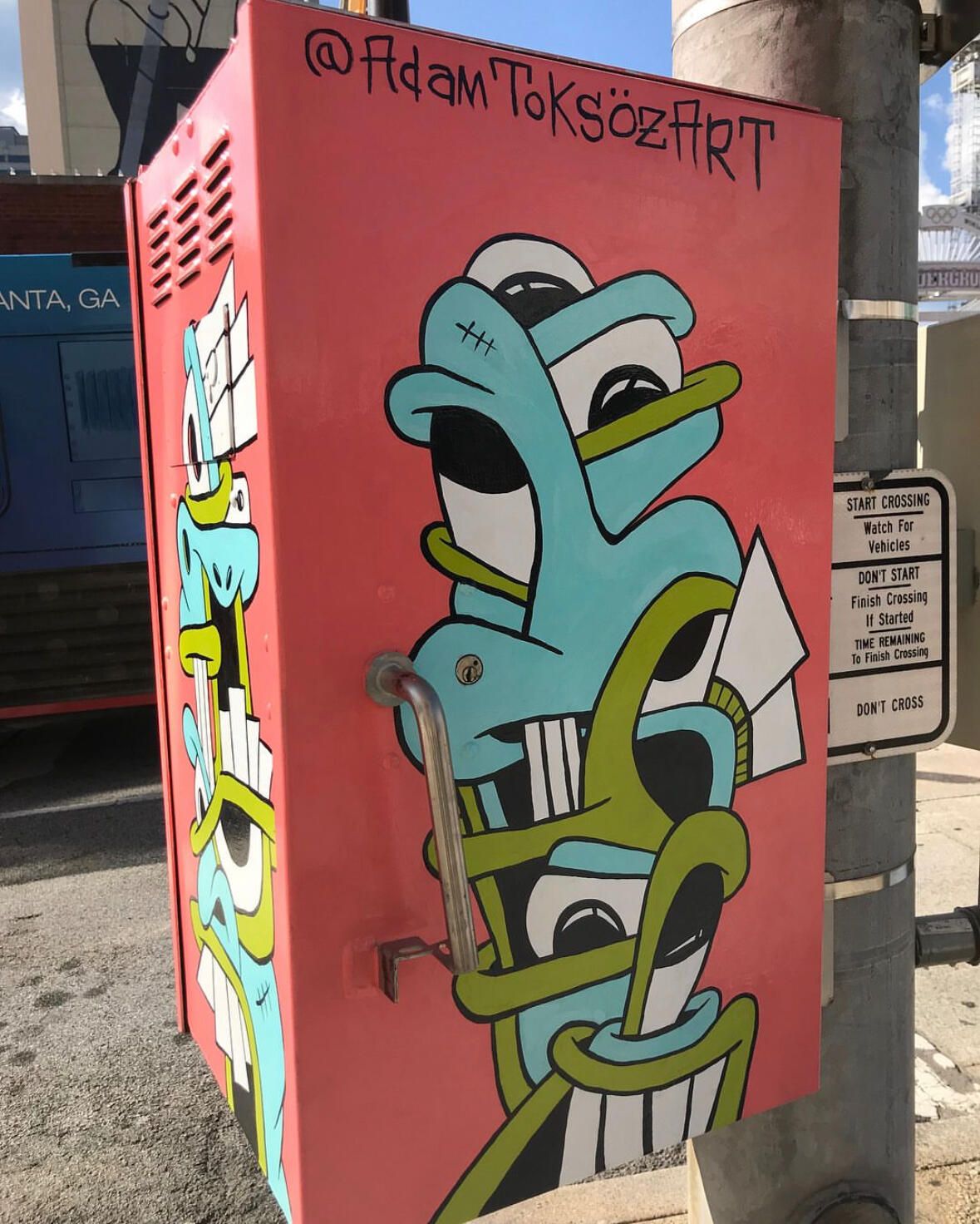 Enamel on metal utility boxThis piece was commissioned by City of Atlanta in 2017.My wife & I spent nights and weekend at Underground Atlanta over a few months to paint this piece. It was such a great time & we had alot of interesting experiences.